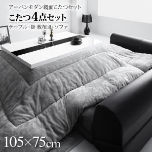 送料無料 こたつセット VASPACE ヴァスパス こたつ4点セット(テーブル+掛・敷布団+ソファ) 長方形(75×105cm) 鏡面仕上げ アーバンモダンデザイン コタツ 炬燵 ローテーブル ソファー フロアソファー ラグ ホットカーペットカバー フランネル素材 洗濯可 防ダニ